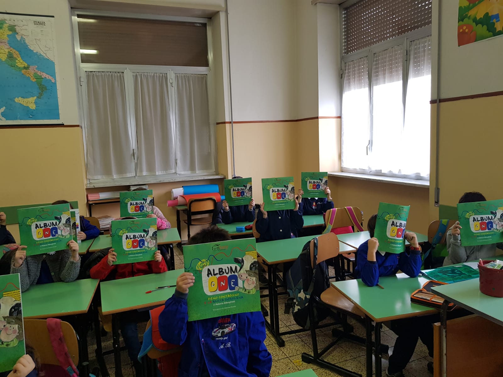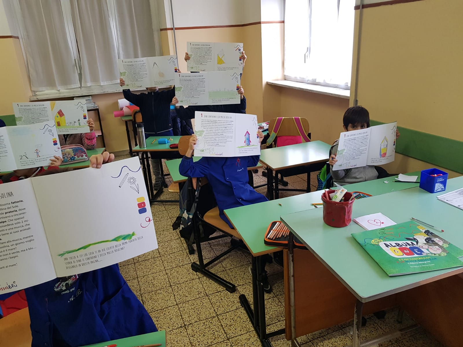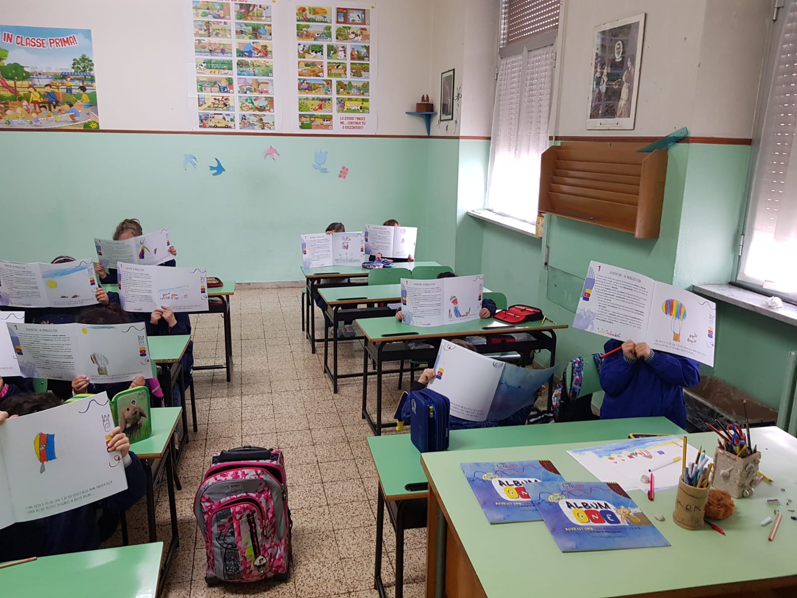 I fascicoli erano stati consegnati prima delle vacanze natalizie, come se fossero un regalo speciale. Ora, il rientroa scuola non poteva essere più divertente e coinvolgente. Come documentano le immagini della fotogalleria, tutti stanno lavorando con tanto impegno, creatività e, soprattutto, divertimento. Con la guida delle docenti, stanno leggendo le puntate delle storie e poi, dopo averle discusse, passano all’azione, riempiendo le pagine del grande “librattivo” di Funtasy. E così, al testo narrato – raccontato in classe dalle docenti: e AlbumOne, anche in questo senso, ne valorizza il ruolo e l’azione – sono affiancate le pagine con bellissimi e coloratissimi disegni.