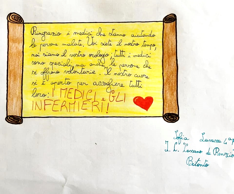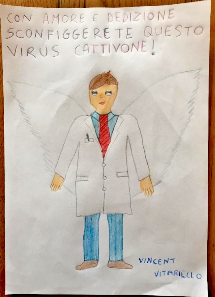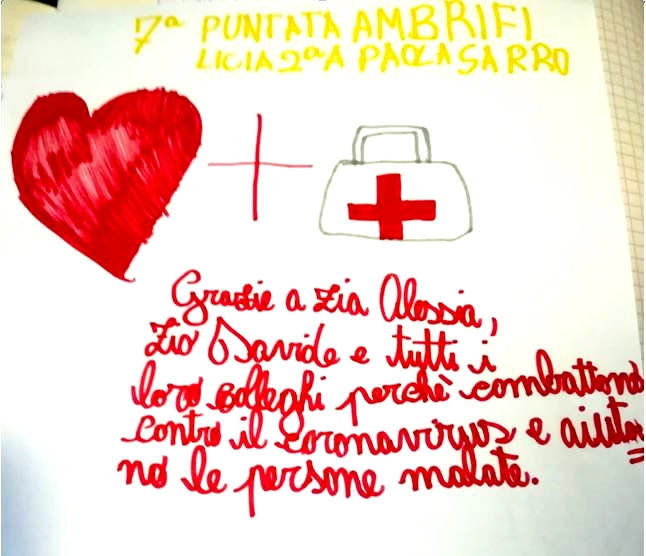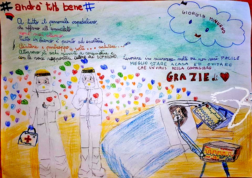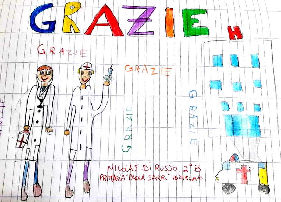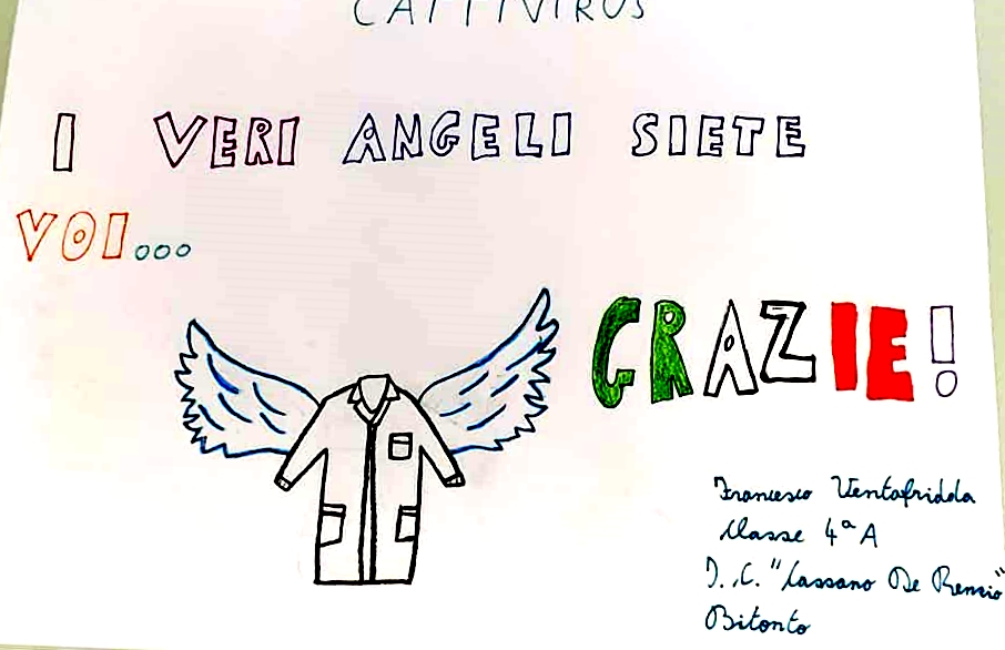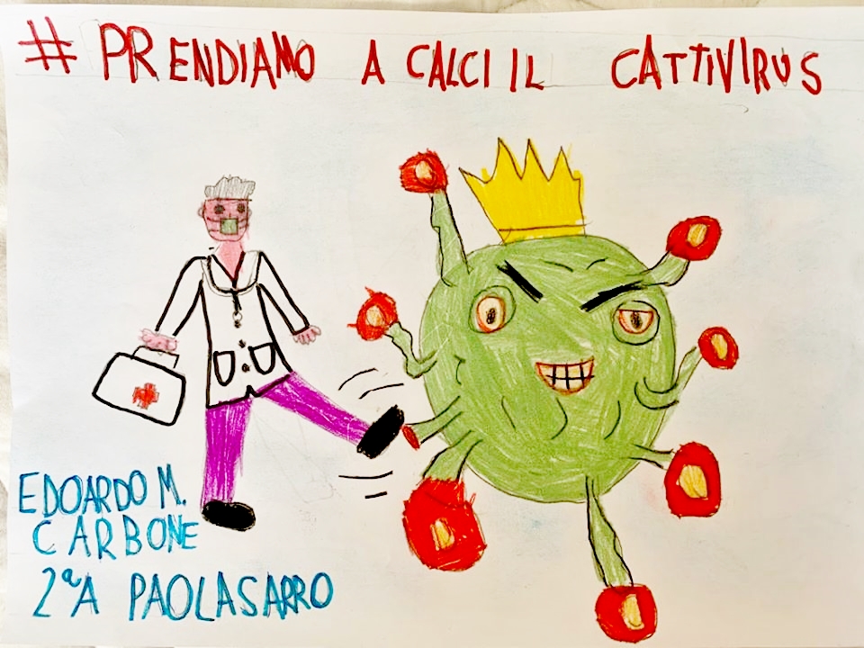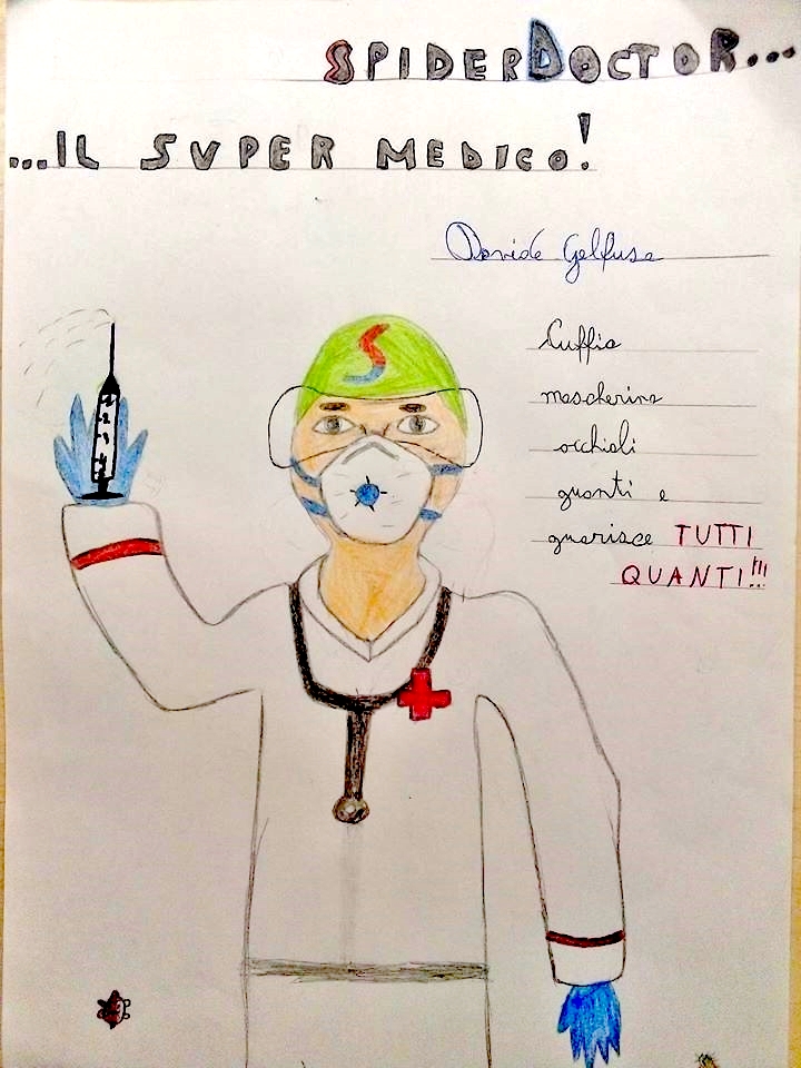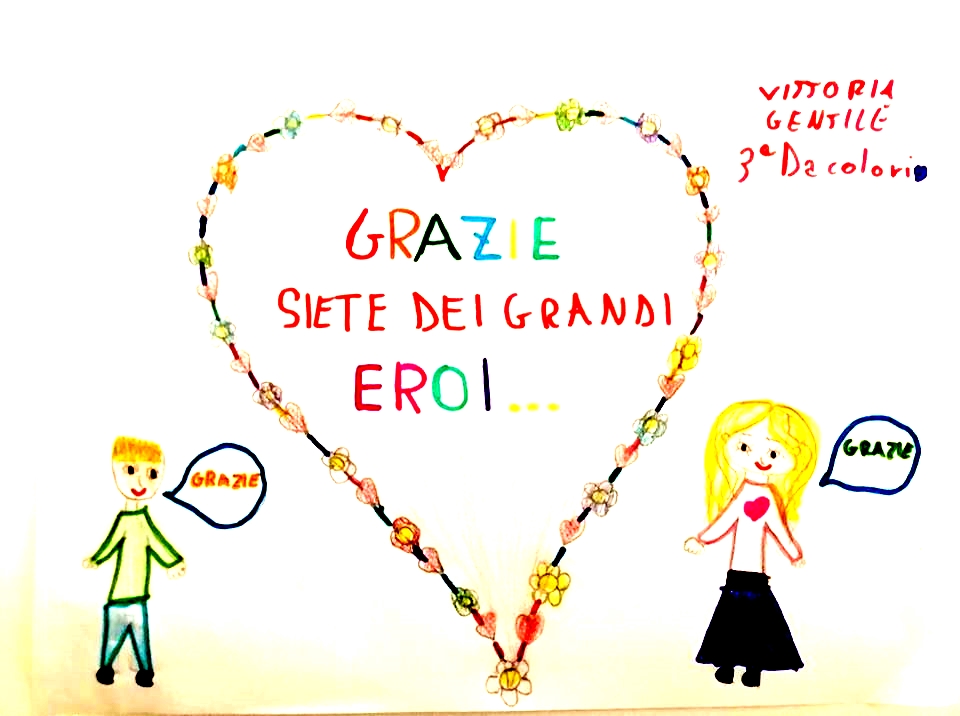 Grazie a tutti gli “eroi” che stanno combattendo Cattivirus: medici, infermieri, volontari e tante altre persone che continuano a lavorare per garantire i servizi essenziali alla popolazione in queste settimane di emergenza sanitaria per il coronavirus. Sono tanti i disegni-messaggio che stanno arrivando a Funtasy e ad Okay! a seguito dell’iniziativa lanciata “a distanza” a tutte le scuole italiane, con la proposta della storia a puntate “Il giorno in cui Cattivirus finì ko“. Come noto, ogni puntata chiede agli allievi di produrre un lavoro, in linea con il contenuto della storia proposta. Nella settima puntata è chiesto di pensare a quanti, appunto, sono in primi linea in tanti luoghi ed ambienti, come i medici, i volontari, le forze dell’ordine, gli addetti alle pulizia, le associazioni umanitarie e altre categorie di persone impegnate in compiti e mansioni importanti.