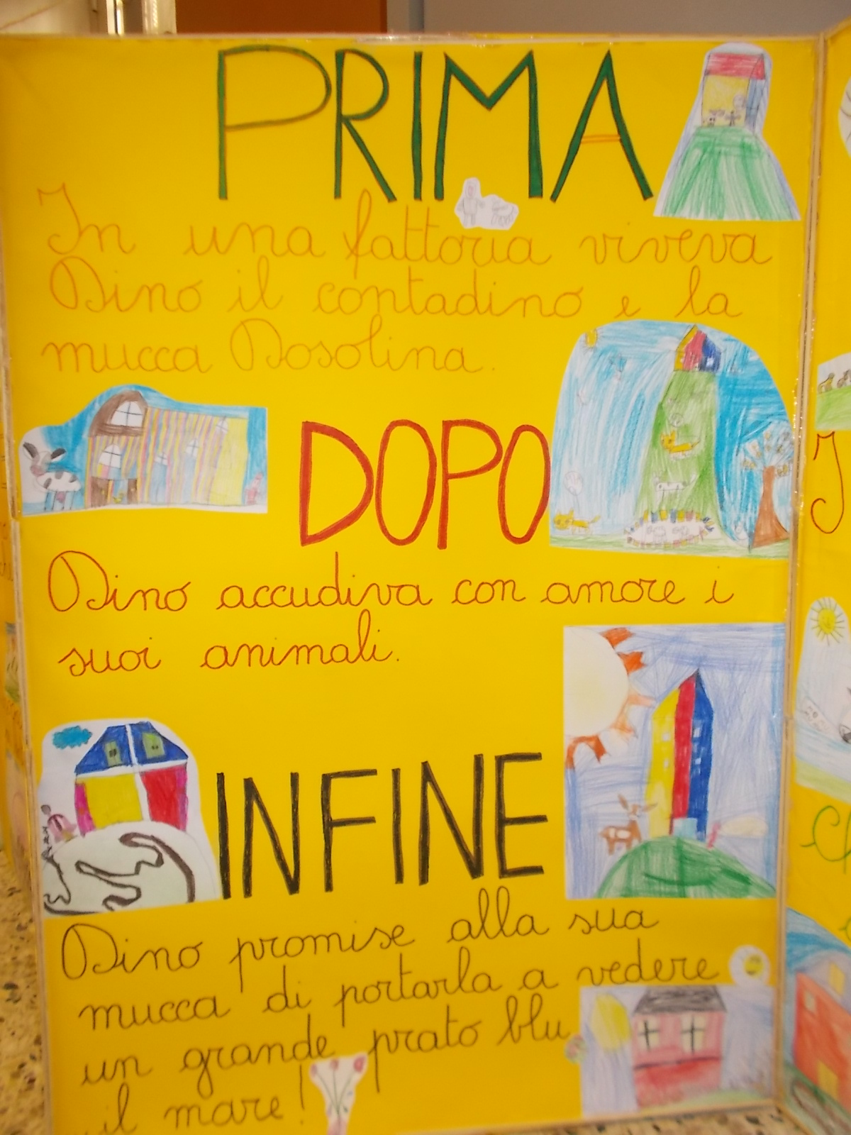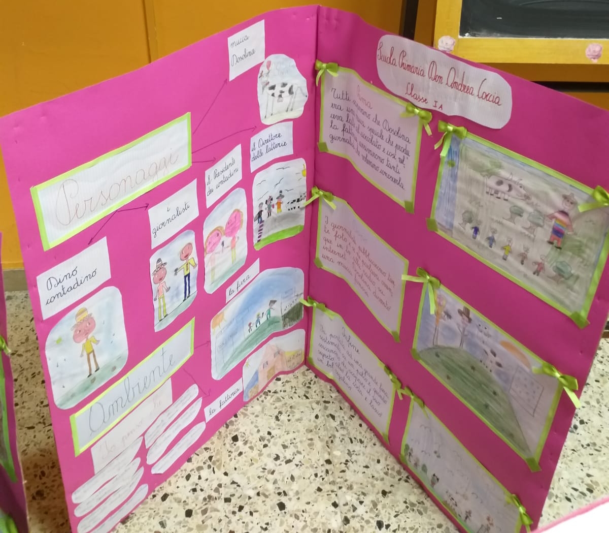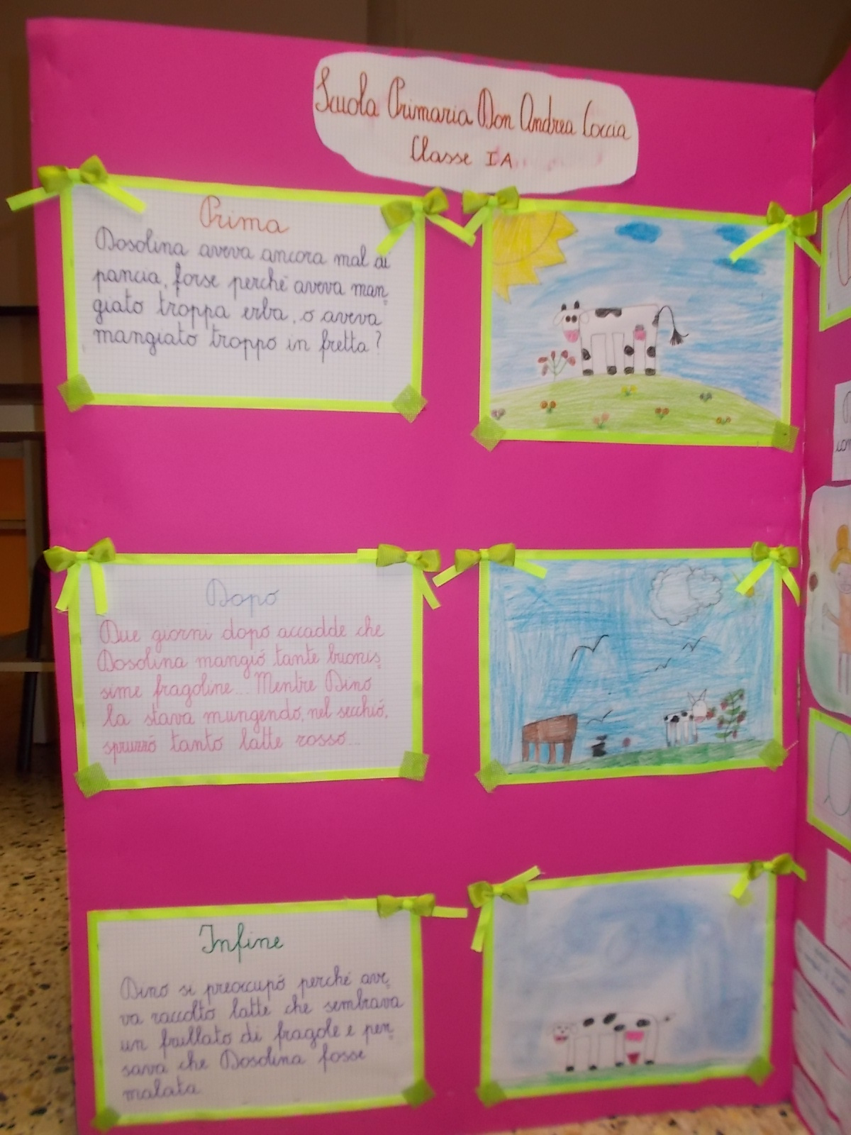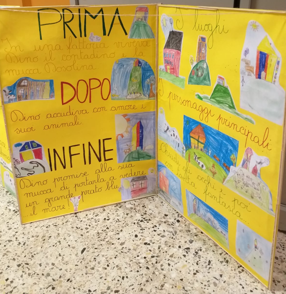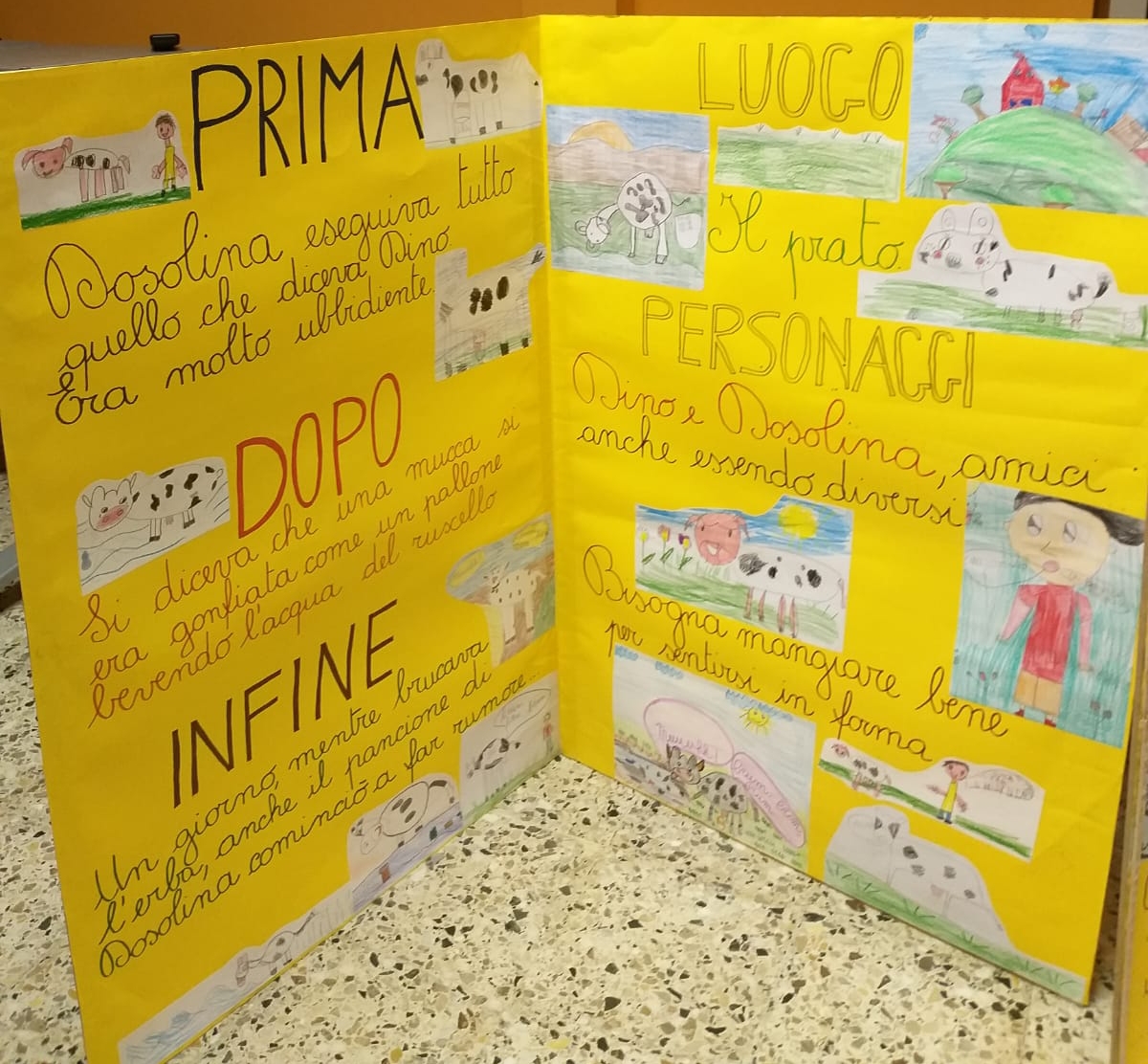 Le varie classi, guidati dal gruppo delle maestre, hanno lavorato sulle pagine di AlbumOne n.2, che narra la storia di “Dino Contadino e la mucca Dosolina”. Lo avevano già fatto con AlbumOne n.1, “Avventure in mongolfiera”, registrando sorprendenti risultati nel campo dell’apprendimento, del coinvolgimento e del… divertimente. E dunque, è stato così anche con il fascicolo n.2 degli AlbumOne di Funtasy le Edizioni del Divertimente. Lo dimostra la varietà di lavori e tabelloni, che presentiamo su questo sito.