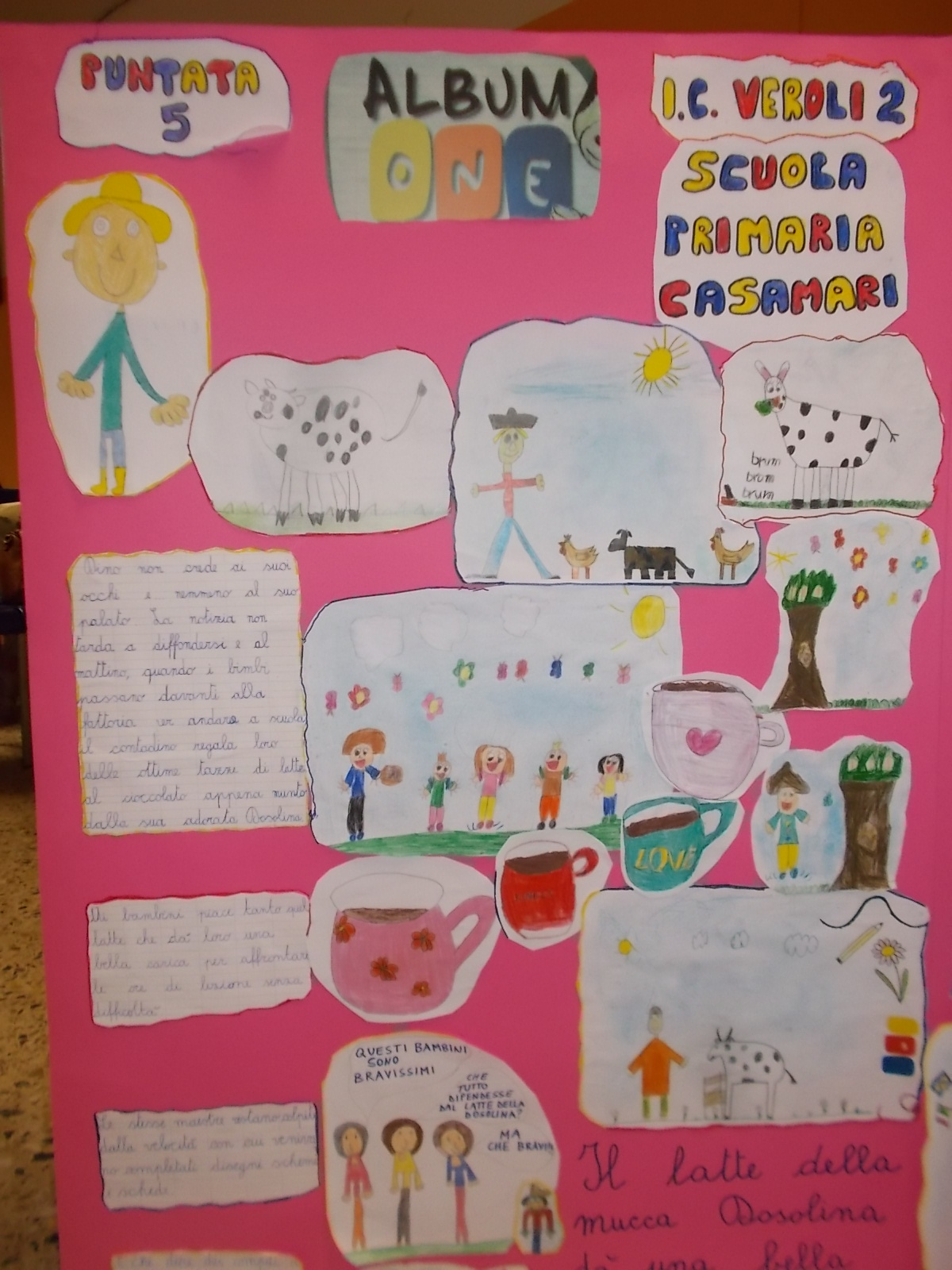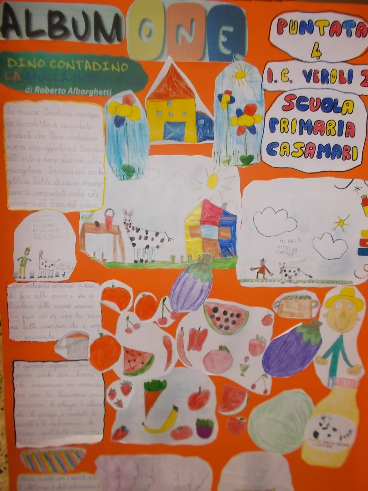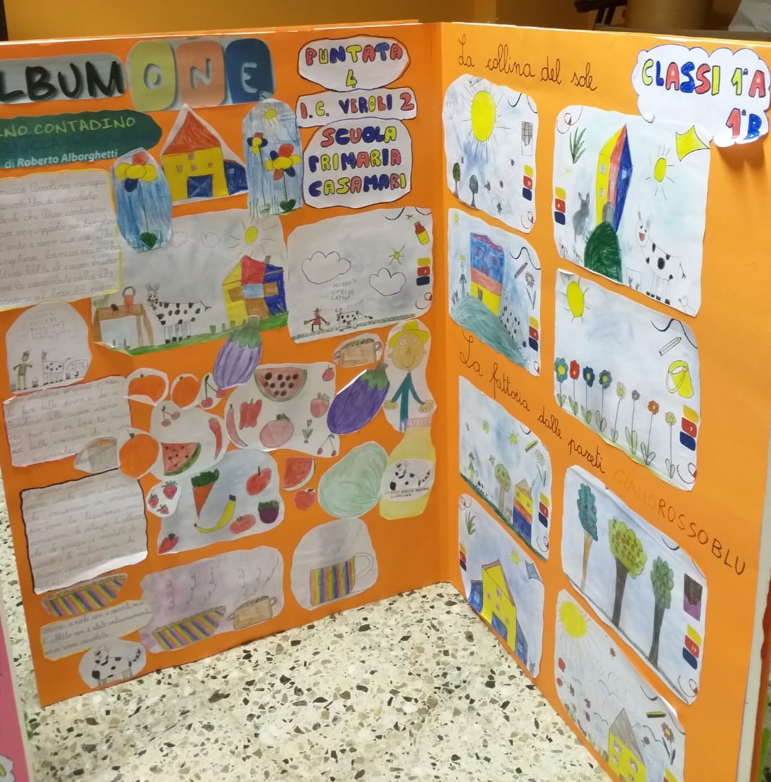 Davvero un lavoro da manuale, come si usa dire, quello svolto sull’AlbumOne dedicato a Mucca Dosolina e a Dino Contadino dai piccoli allievi dell’Istituto Comprensivo Veroli 2, diretto dalla dott.ssa Angela Avarello. I bimbi e le bimbe delle scuole dell’infanzia e della primaria, durante mesi di lavoro didattico dedicato ad AlbumOne n.2 (Dino Contadino e la mucca Dosolina) – edito da Funtasy, scritto da Roberto Alborghetti e illustrato da Eleonora Moretti – hanno realizzato una svariata serie di opere grafiche, che raccontano l’impegno profuso sulle pagine di AlbumOne. Le attività hanno coinvolto  allievi e docenti della Scuola dell’Infanzia e delle prime classi della Primaria dell’IC Veroli 2, nei plessi di Giglio, Casamari, San Giuseppe, Cotropagno.